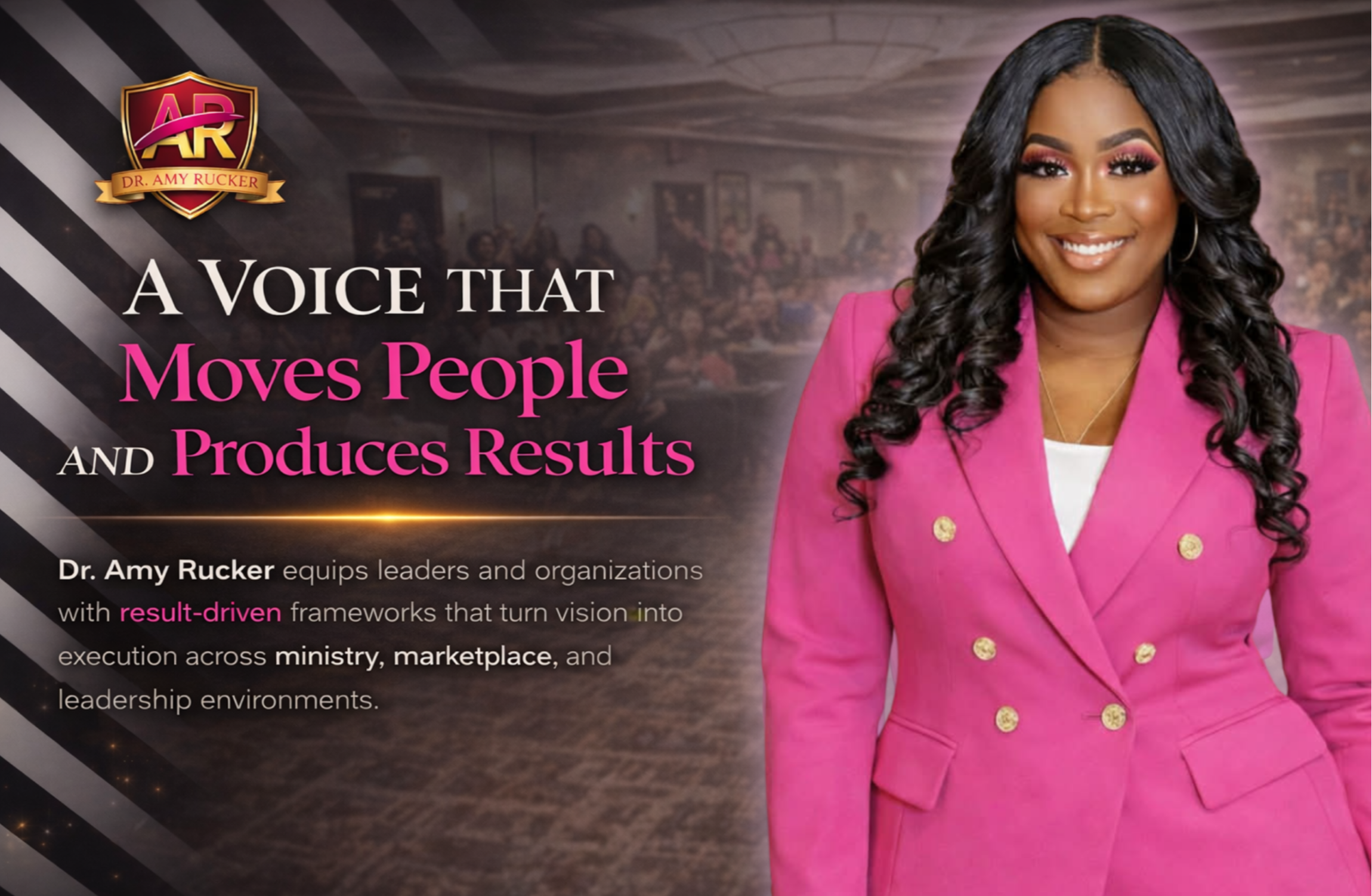 Dr. Rucker is a proven executor—not just a voice, but a builder. Her presence is marked by authenticity, insight, and strategic precision. She engages audiences with a commanding yet relatable style that challenges complacency, inspires action, and produces measurable transformation.